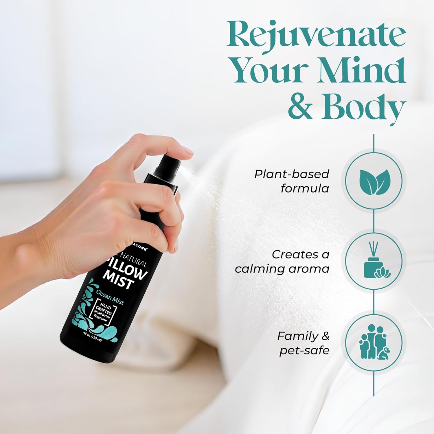 - KEEP STRESS AT BAY - It's hard to fall asleep if your mind is hounded or stressed. This ocean mist pillow spray promotes a feeling of comfort & calmness, helping clear away mental stress in no time.